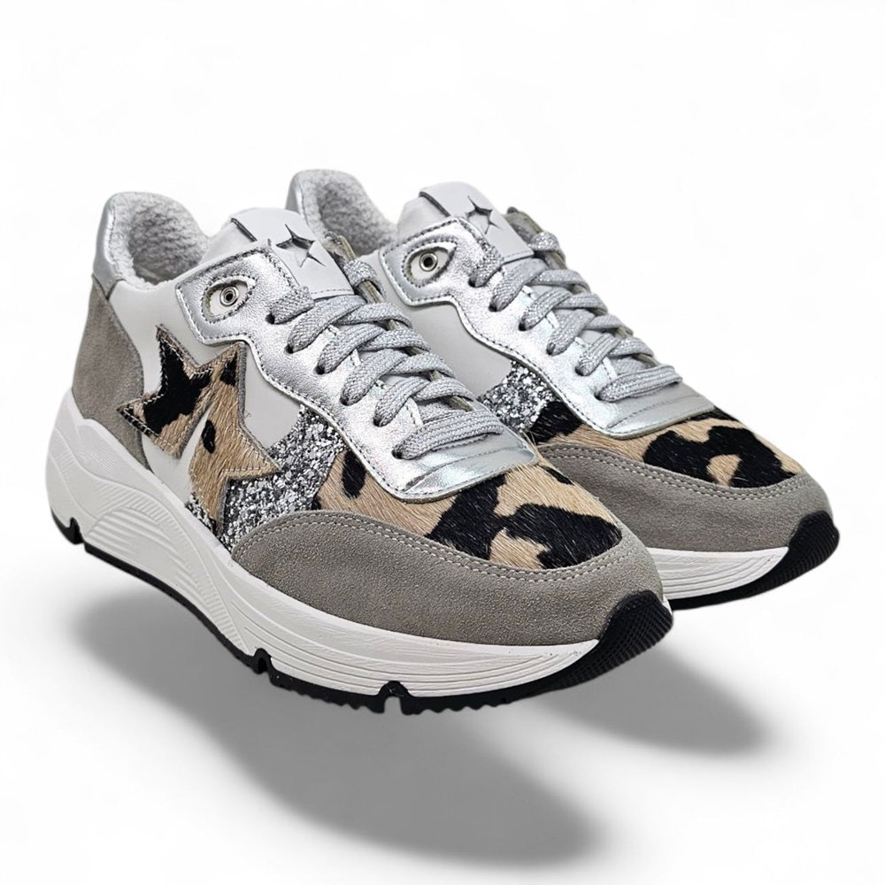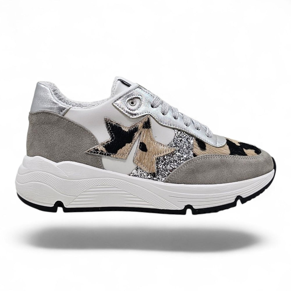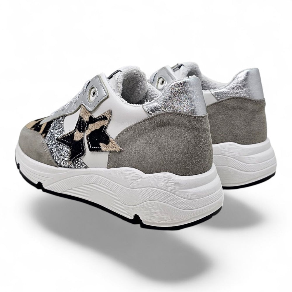 Tomaia: vera pelle con particolari in camoscio, pelle argento e cow
