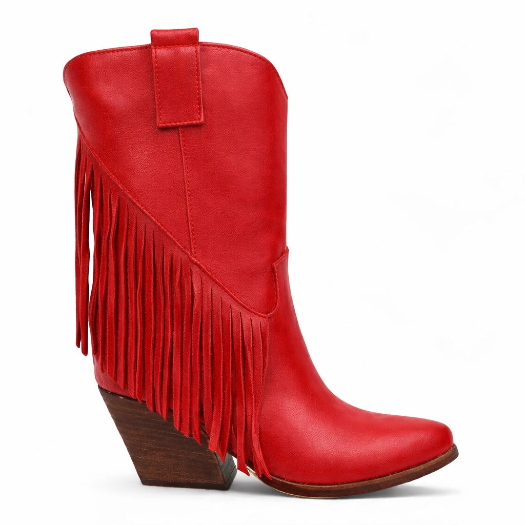 Il modello Montana è realizzato in morbido pelle color rosso e si distingue per le lunghe frange laterali, che donano movimento e carattere alla silhouette. Un dettaglio scenografico che richiama l’estetica western più autentica, reinterpretata in chiave femminile e moderna.