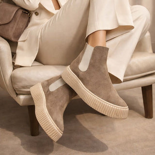 Realizzato in pellami e camosci morbidi di altissima qualità, il nostro Beatles offre una calzata avvolgente e raffinata, esaltata dalla suola alta da 5 cm che dona slancio, carattere e comfort.
