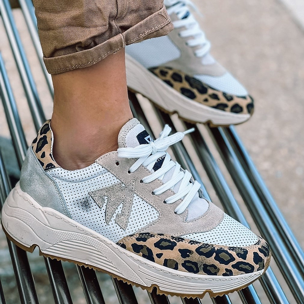 Tomaia: tomaia in vera pelle traspirante traforata con particolari in maculato