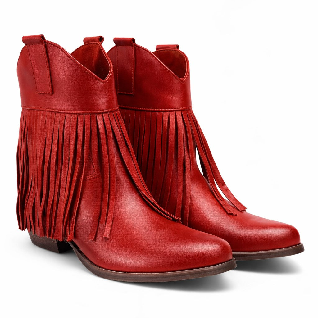 Stivaletti texani Louisiana in pelle rosso con frange Viviana Vi VV26301