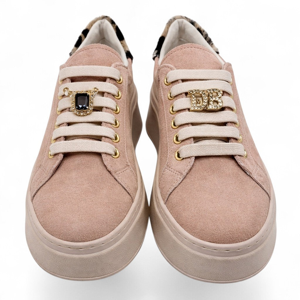 Tomaia: camoscio rosa con particolari in cavallino dalmata ed accessori made in Italy