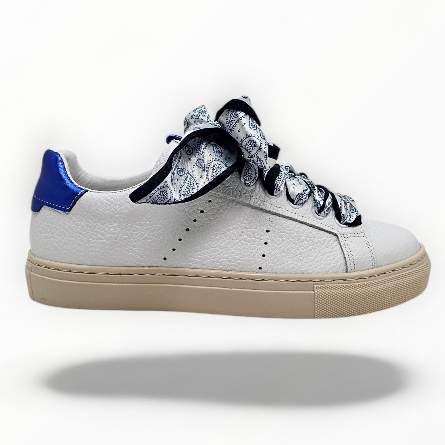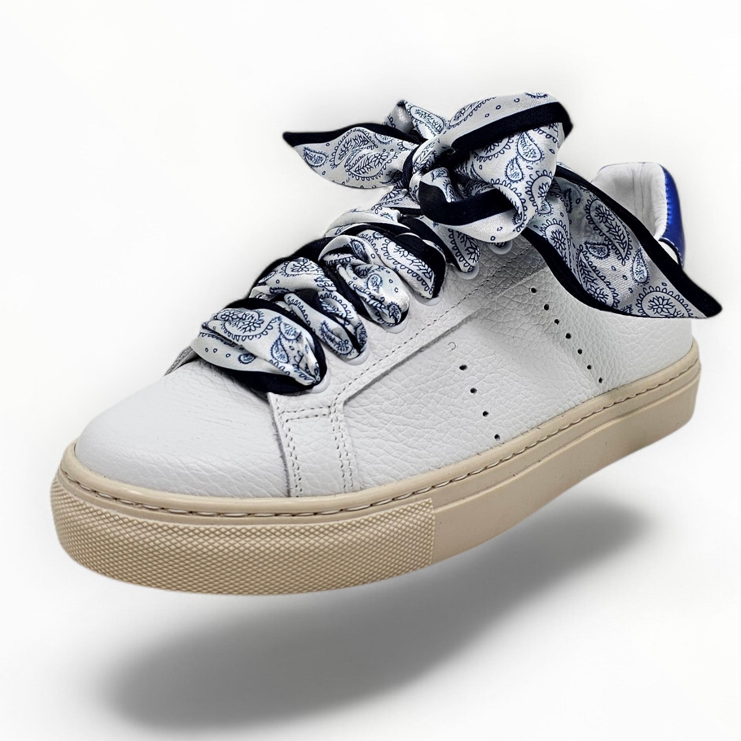 Tomaia: vera pelle bottolata con laccio extrasize in raso